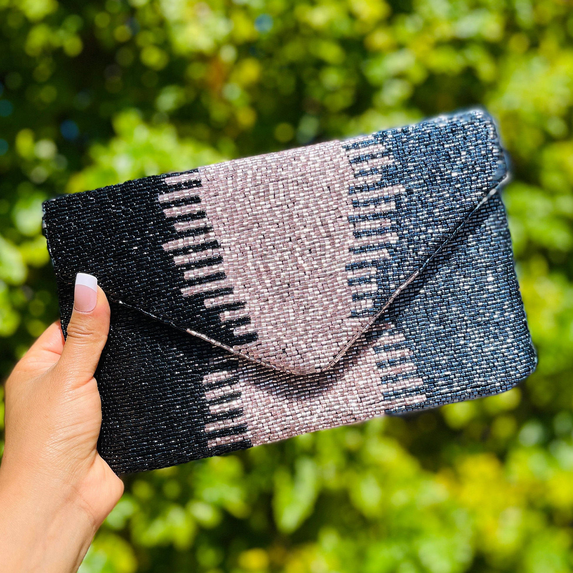 Be the first to review “Minimalist contrast color hand-beaded envelope bag”