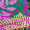 Botanical aesthetics: The layered petals of a Strelitzia reginae, the veins of a palm leaf, and the pinnate fronds of a fern are all accurately recreated through the density and color depth of the beads. Plant lovers will instantly recognize the ingenuity of this “tropical botanical illustration.”