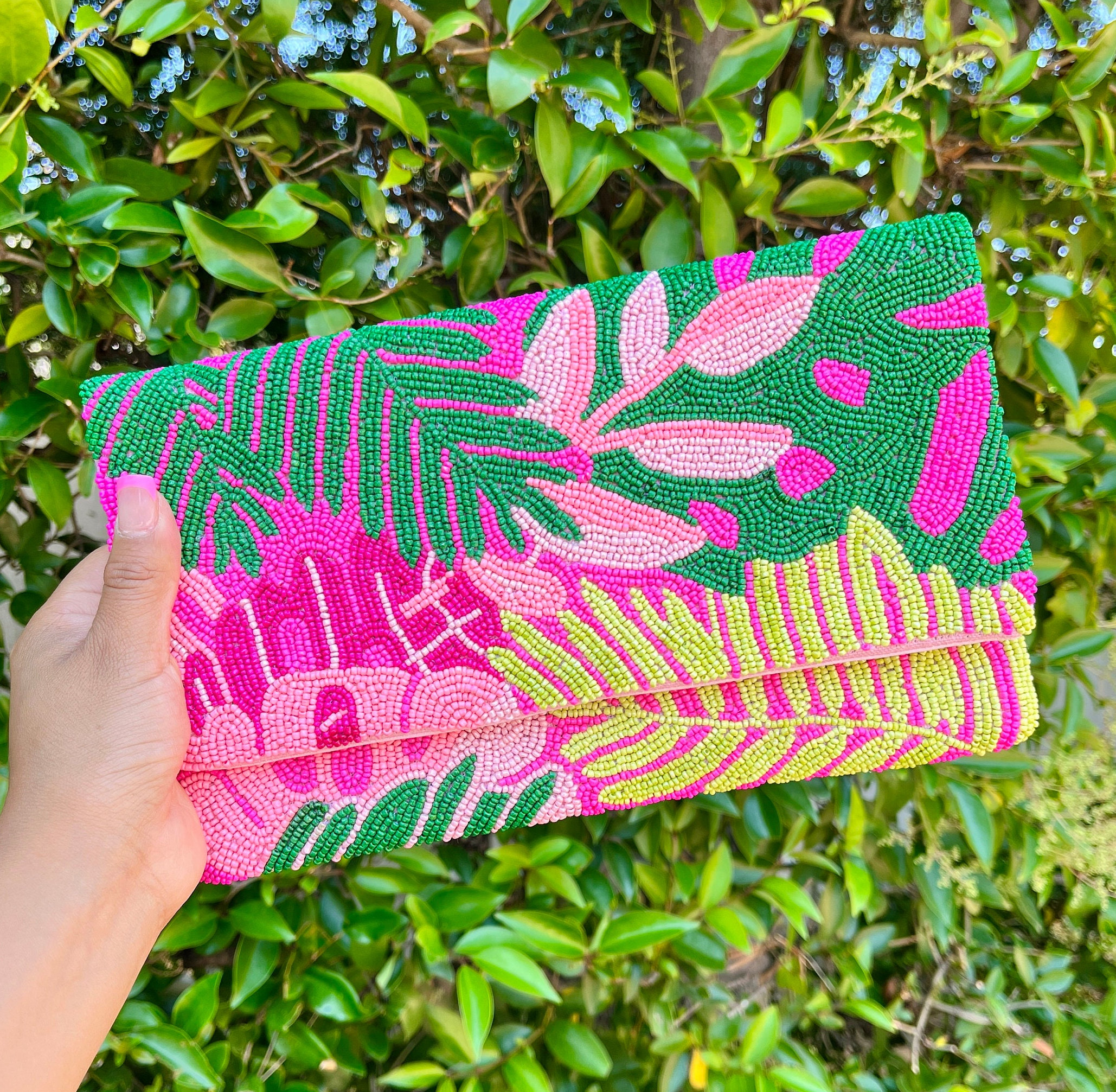 This bag embodies the intersection of handmade art and natural aesthetics—each bead speaks of the warmth of handcraft and the romance of nature. Carrying it in various settings, this unique tropical artistry will make you stand out from the crowd.